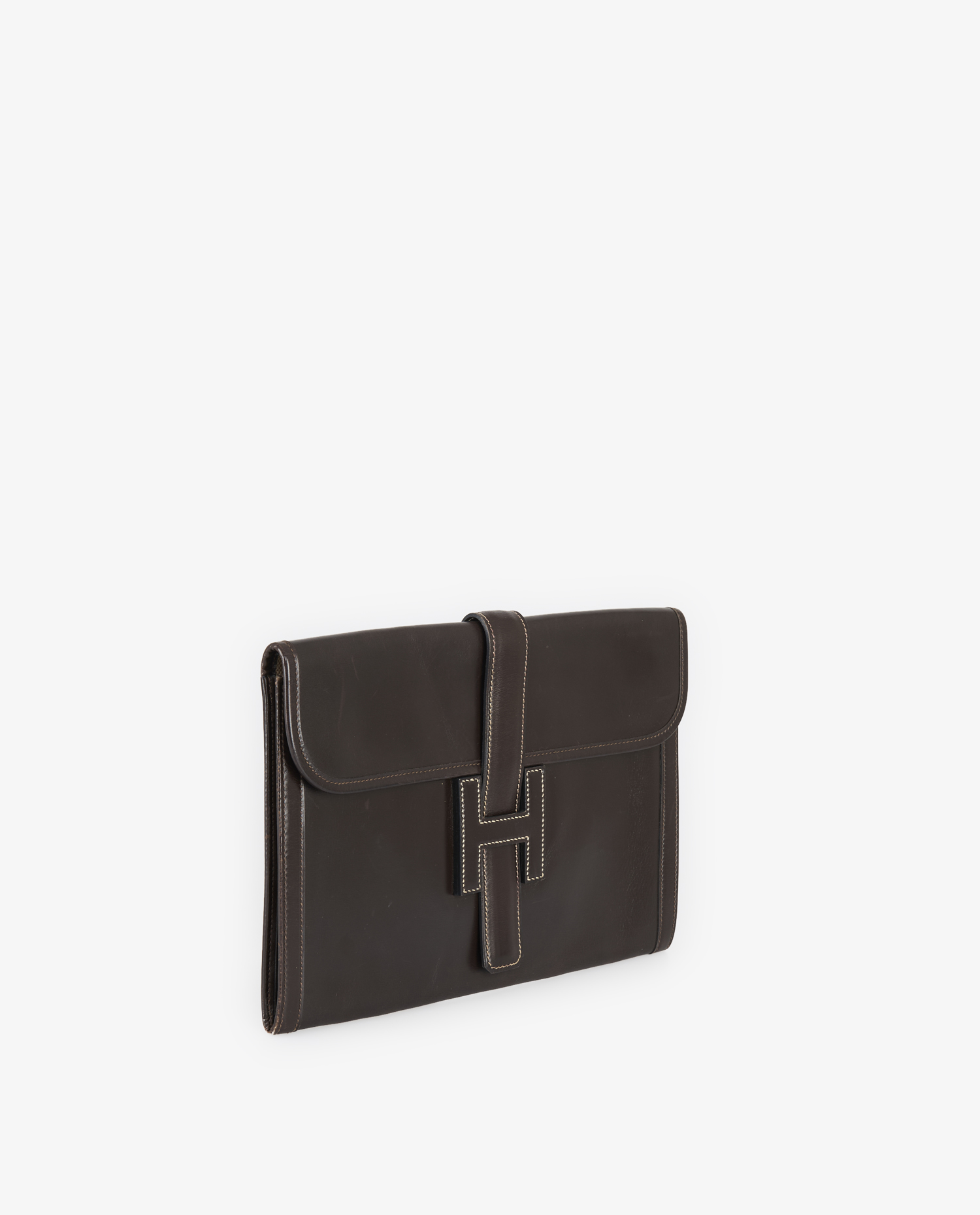 Pochette Jige Hermès box marron vintage